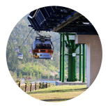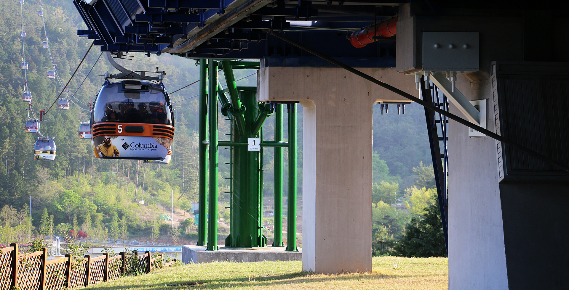 스카이라이드 체어리프트에 올라타서 통영시의 환상적인 전경과 함께 빼어나게 아름다운 해안가 그리고 주변의 섬들을 둘러볼 수 있다.