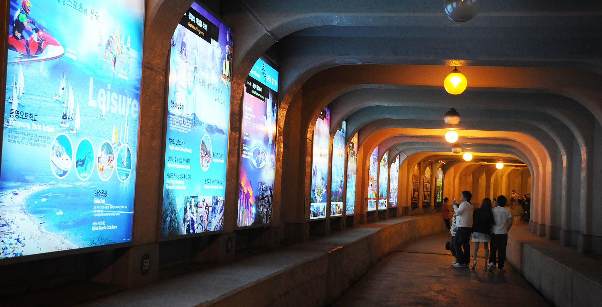 양쪽 터널 입구에 한자로‘용문달양(龍門達陽)’이라고 쓰여 있는데‘용문을 거쳐 산양(山陽)에 통하다’라는 뜻이다. (용문은 중국 고사에 나오는 물살이 센 여울목으로 잉어가 여기를 거슬러 오르면 용이 된다고 한다) 여기서 말하는 산양은 바로 미륵도이다.